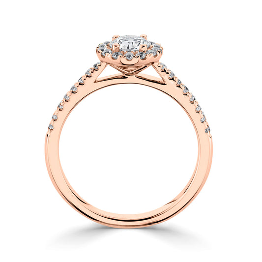 18ct Rose Gold Diamond Set Halo Style Engagement Ring With Shoulder Stones