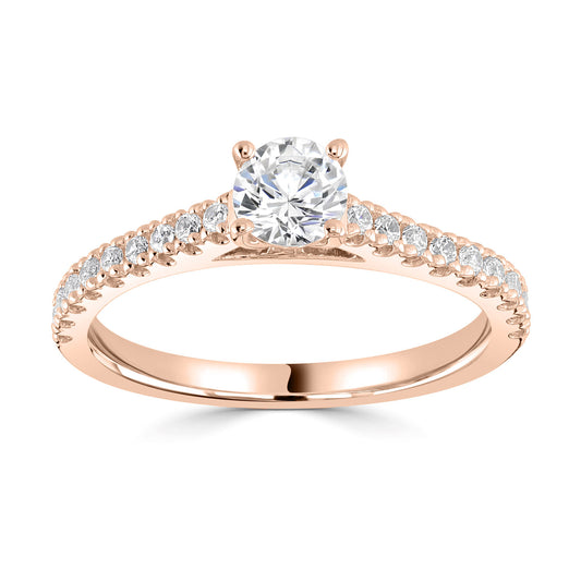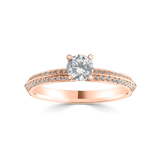 18ct Rose Gold Diamond Ring With Pave Set Rising Shoulders