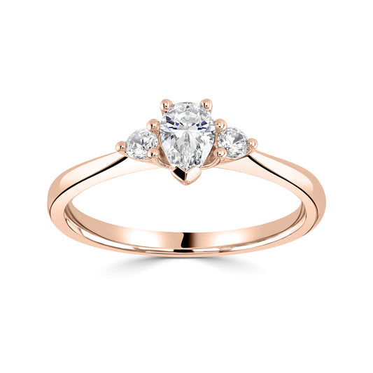 18ct Rose Gold Centre Pear Diamond Triology Ring