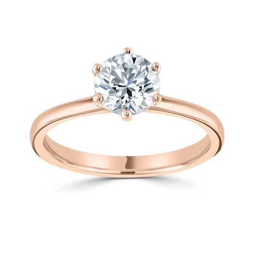 18ct Rose Gold Classic Six Claw Solitaire Diamond Ring