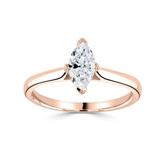 18ct Rose Gold Marquise Cut Four Claw Solitaire Diamond Ring