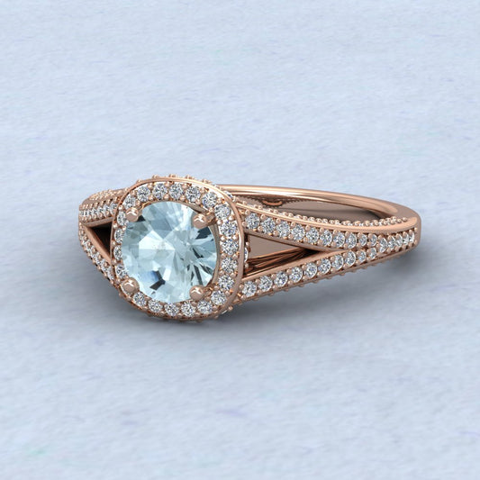 18ct Rose Gold Diamond And Aquamarine Set Ring