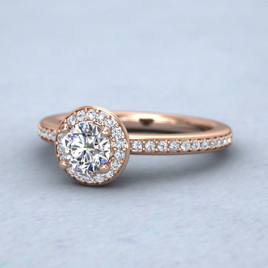 18ct Rose Gold Diamond Set Elegant Halo Style Engagement Ring