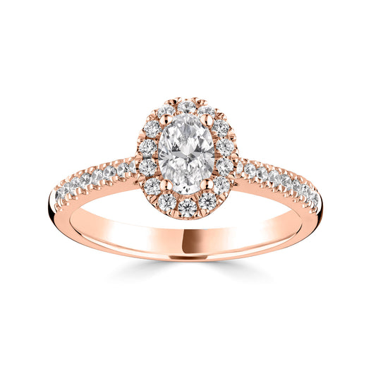 18ct Rose Gold Oval Halo Style Diamond Ring