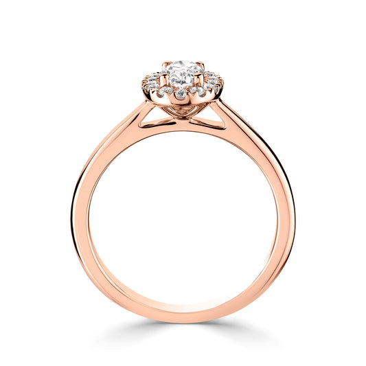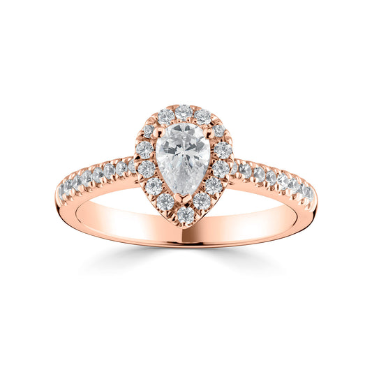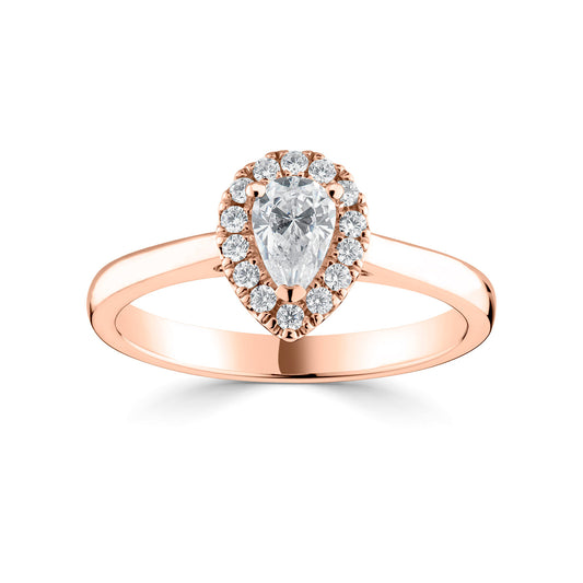 18ct Rose Gold Pear Shape Halo Diamond Ring