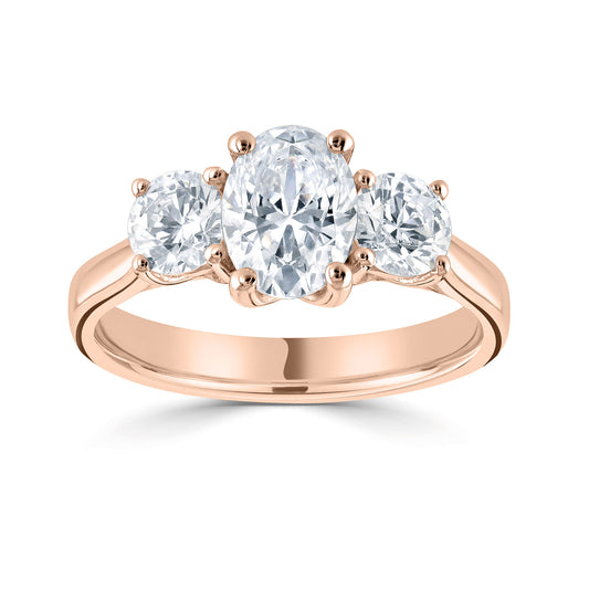 18ct Rose Gold Trilogy Oval Centre Diamond Ring