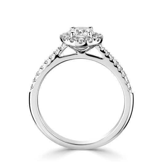 18ct White Gold Diamond Set Halo Style Engagement Ring With Shoulder Stones