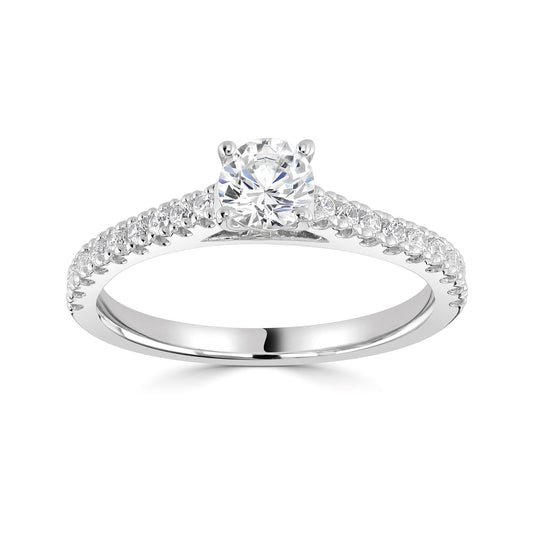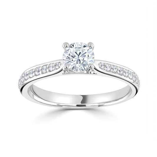 18ct White Gold Diamond Ring With Pave Set Rising Shoulders