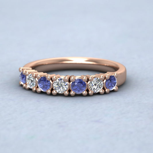 18ct Rose Gold Seven Stone Diamond And Blue Sapphire Ring