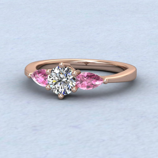 18ct Rose Gold Pear Shape Pink Sapphire And Diamond Three Stone Ring