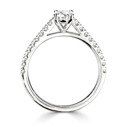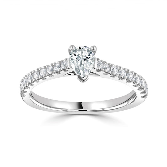 18ct White Gold Pear Shape Diamond Ring With Diamond Shoulders