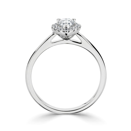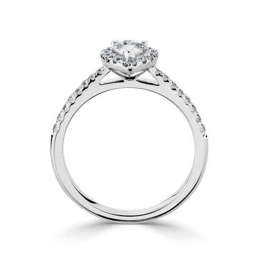 18ct White Gold Pear Shape Halo Plain shoulder Diamond Ring