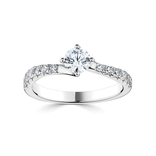 18ct White Gold Elegant Four Claw Twist Diamond Ring