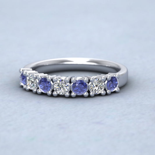18ct White Gold Seven Stone Diamond And Blue Sapphire Ring