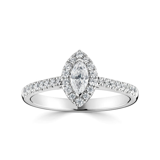 18ct White Gold Marquise Halo Style Diamond Ring With Plain shoulders