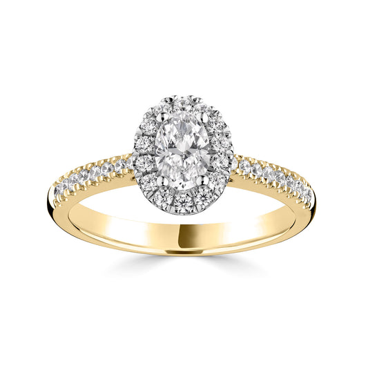 18ct Yellow Gold And Platinum Oval Halo Style Diamond Ring