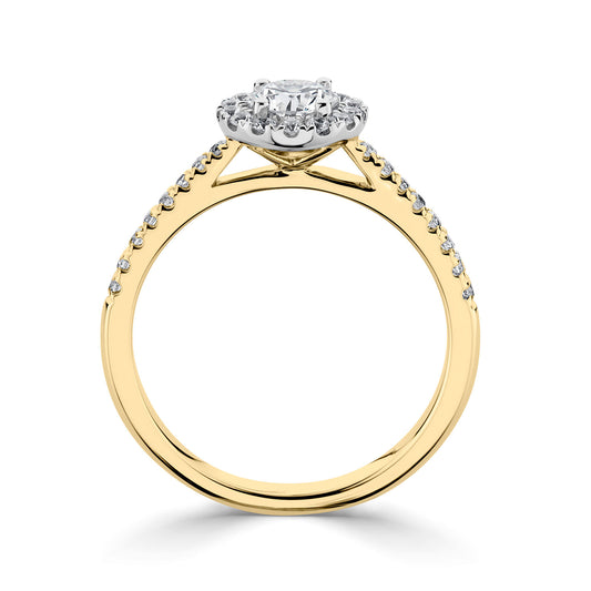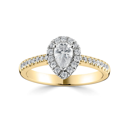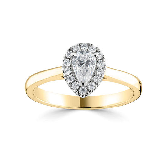 18ct Yellow Gold And Platinum Pear Shape Halo Diamond Ring