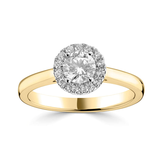 18ct Yellow Gold And Platinum Diamond Set Halo Style Engagement Ring With Shoulder Stones