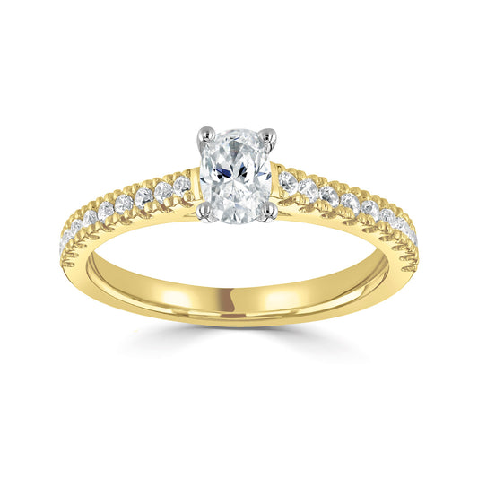 18ct Yellow Gold And Platinum Oval Diamond Ring With Diamond Shoulders