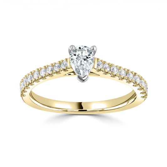 18ct Yellow Gold And Platinum Pear Shape Diamond Ring With Diamond Shoulders