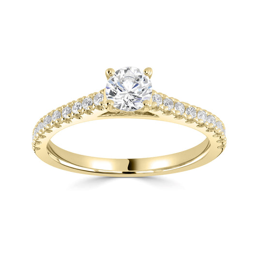 18ct Yellow Gold Diamond Ring With Pave Set Rising Shoulders
