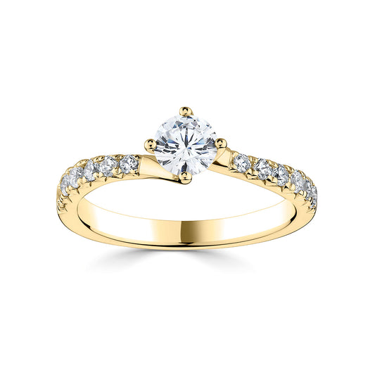 18ct Yellow Gold Diamond Set Engagement Ring With Diamond Set Slim Shoulders.