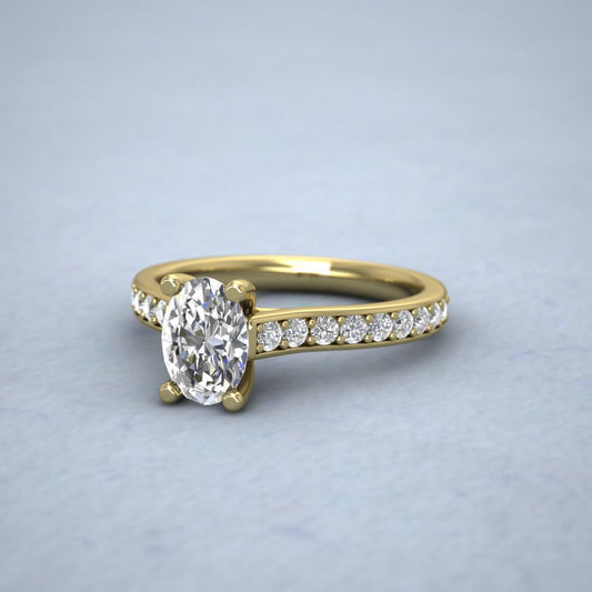 9ct Yellow Gold Four Claw Set Oval Diamond Ring With Shoulder Stones