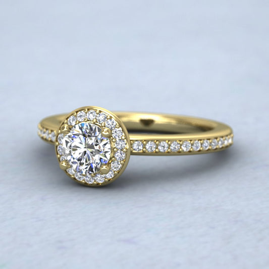 9ct Yellow Gold Slim Halo Diamond Solitaire Ring