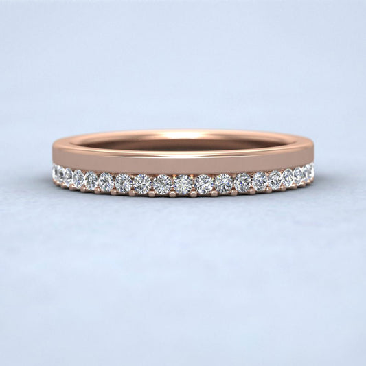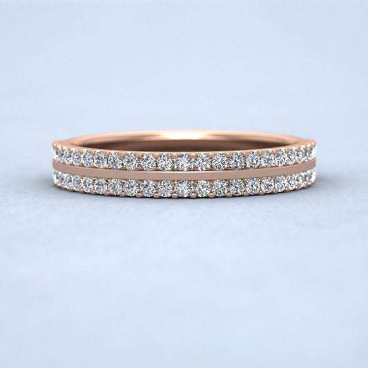 Two Row 0.68ct Half Diamond Set Pave 9ct Rose Gold 45mm Wedding Ring