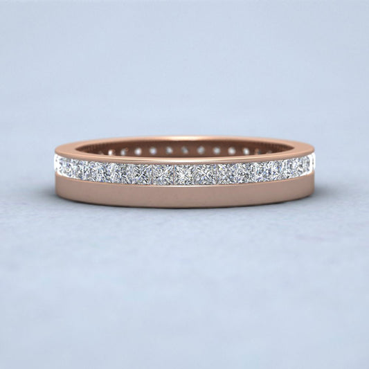 Full Channel Set Princess Cut Diamond 9ct Rose Gold 3.5mm Wedding Ring