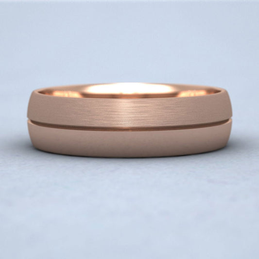 Matt And Polished Line Patterned 18ct Rose Gold 6mm Wedding Ring