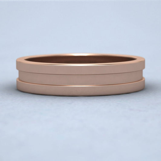 Flat Central Grooved 18ct Rose Gold 5mm Flat Wedding Ring