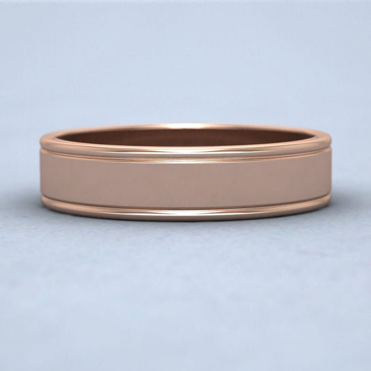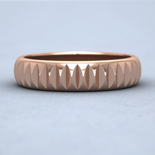 Rounded Edge Grooved Pattern Flat 18ct Rose Gold 5mm Flat Wedding Ring