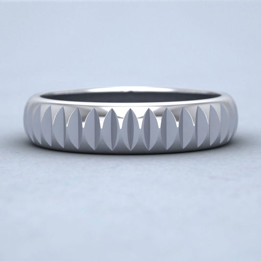 Soft Edged And Patterned 950 Platinum 5mm Flat Comfort Fit Wedding Ring