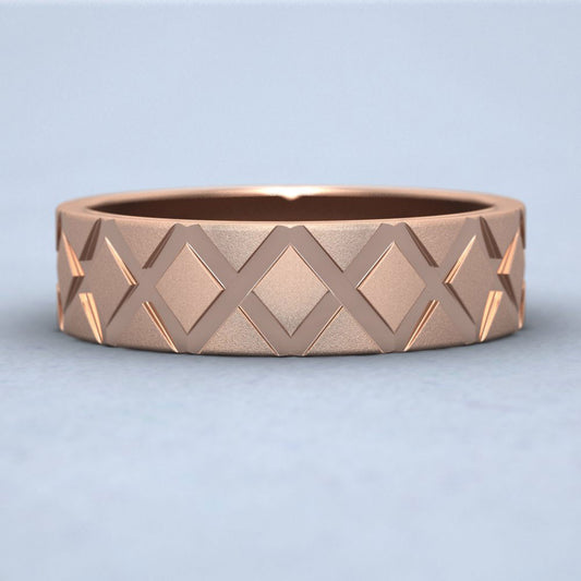 Diagonal Cross Pattern 18ct Rose Gold 6mm Wedding Ring