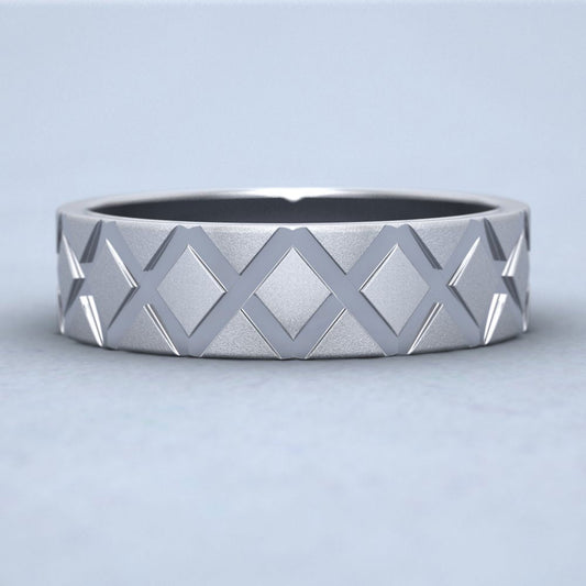 Diagonal Cross Pattern 18ct White Gold 6mm Wedding Ring