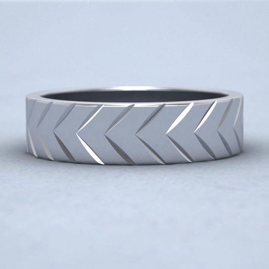 Chevron Pattern 14ct White Gold 6mm Wedding Ring