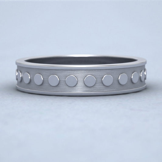 Raised Circle And Edge Patterned 18ct White Gold 5mm Wedding Ring