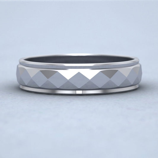 Facet And Line Pattern 14ct White Gold 5mm Wedding Ring