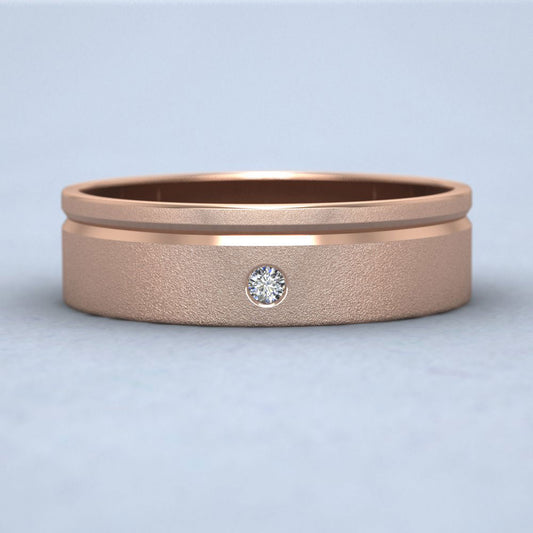 Diamond Set And Asymmetric Line Patterned 18ct Rose Gold 6mm Wedding Ring