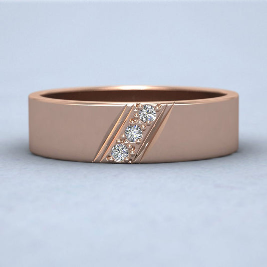 Three Diagonal Diamond Set 18ct Rose Gold 6mm Wedding Ring