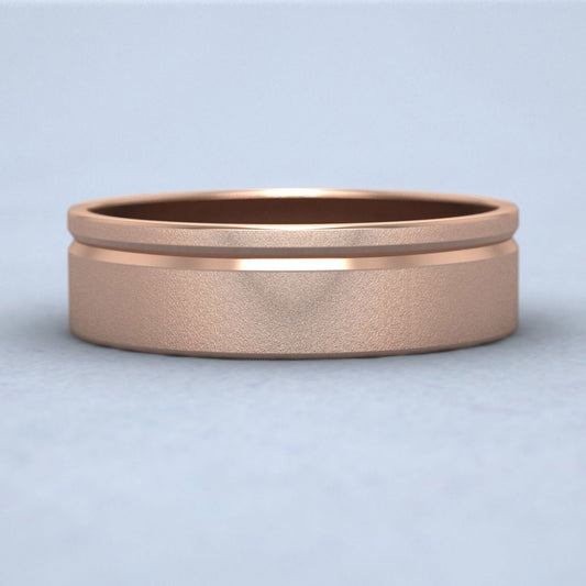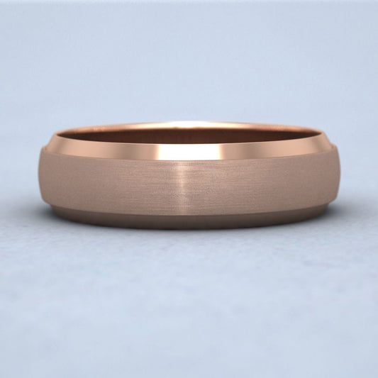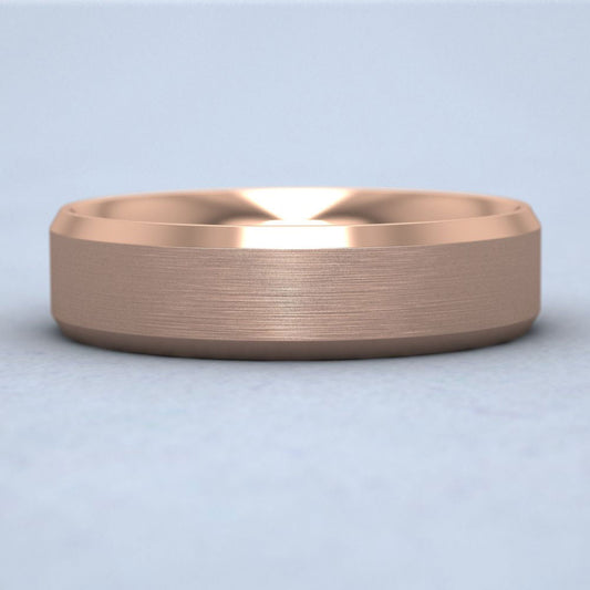 Bevelled Edge And Matt Finish Centre Flat 18ct Rose Gold 6mm Wedding Ring