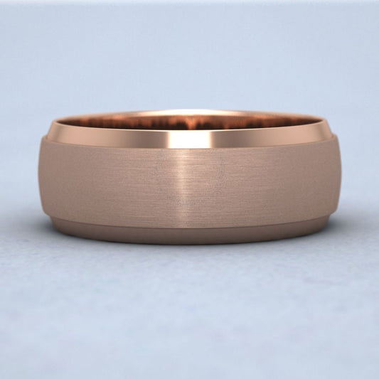 Flat Edge Patterned And Matt Finish 18ct Rose Gold 8mm Wedding Ring