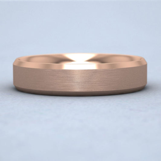 Bevelled Edge And Matt Finish Centre Flat 18ct Rose Gold 5mm Wedding Ring