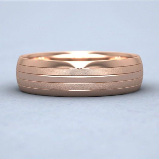 Four Line Pattern With Shiny And Matt Finish 9ct Rose Gold 6mm Wedding Ring