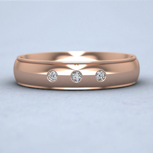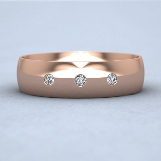 Three Diamond Flush Set 9ct Rose Gold 6mm Wedding Ring