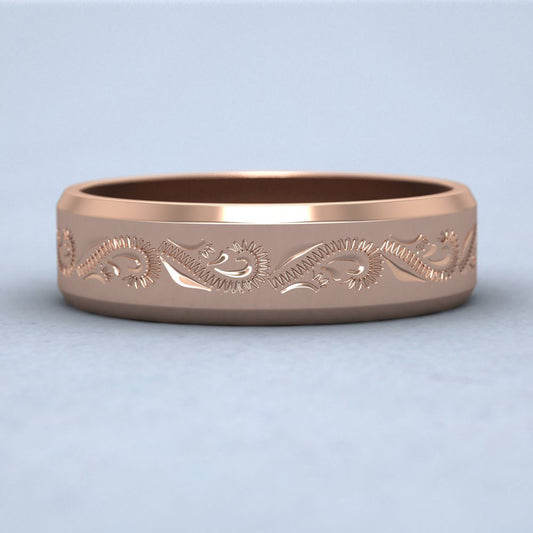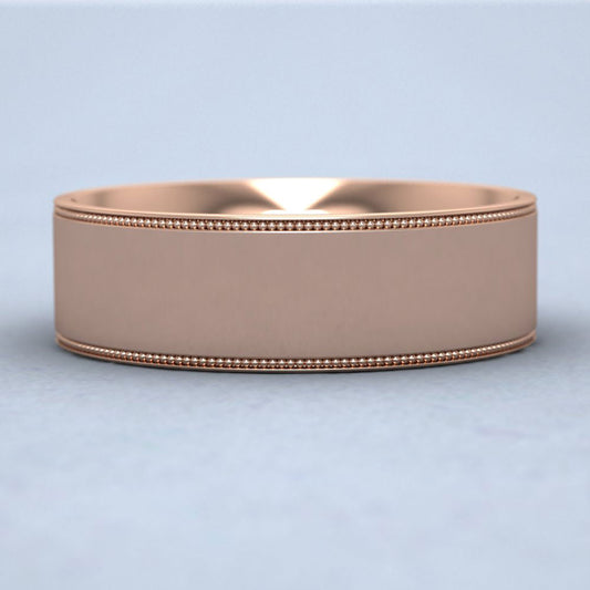 Bevelled Edge And Millgrain Pattern 9ct Rose Gold 6mm Flat Wedding Ring