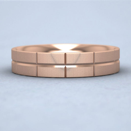 Cross Line Patterned 18ct Rose Gold 5mm Flat Comfort Fit Wedding Ring