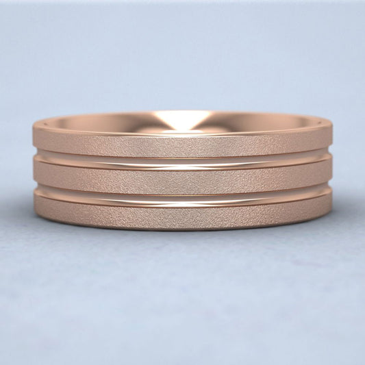 Double Groove Pattern 9ct Rose Gold 7mm Wedding Ring