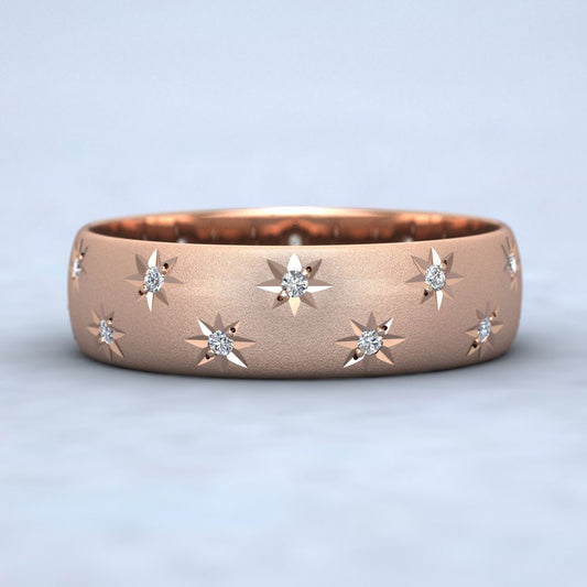 Star And Diamond Set 9ct Rose Gold 6mm Wedding Ring